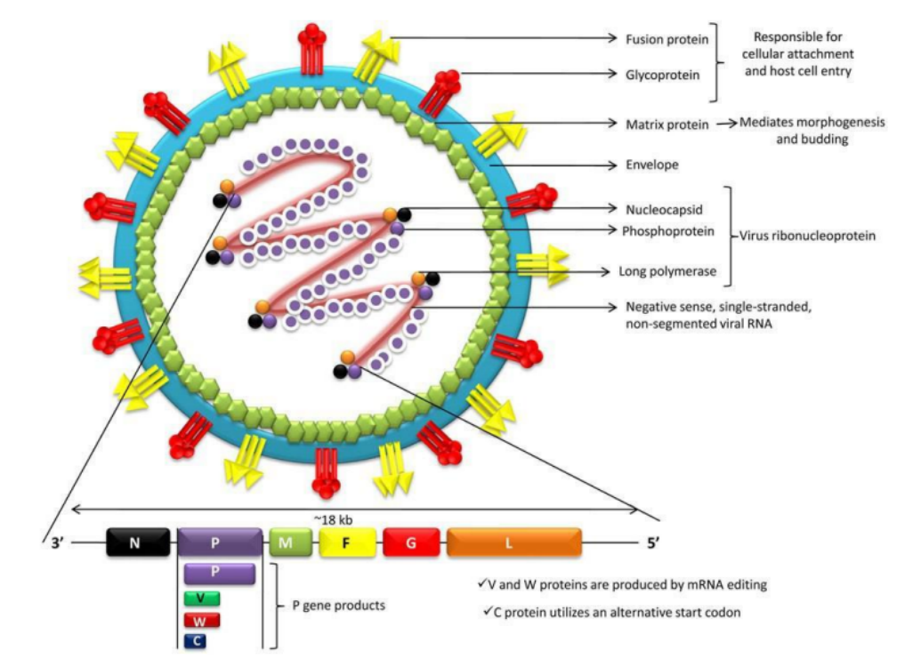 尼帕病毒是一种人畜共患的RNA病毒,属于副粘病毒科亨尼帕病毒属。它能够引起严重的呼吸系统疾病和脑部炎症,致死率高达40%至75%[1]。此次印度疫情中,已有多个确诊病例,其中包括医护人员,进一步凸显了该病毒的传播风险。尼帕病毒可通过动物(蝙蝠、猪)或被污染的食物传播,也可直接人传人。世界卫生组织指出,目前尚无尼帕病毒的获批疫苗或抗病毒药物,只能使用抗病毒药物进行对症治疗。